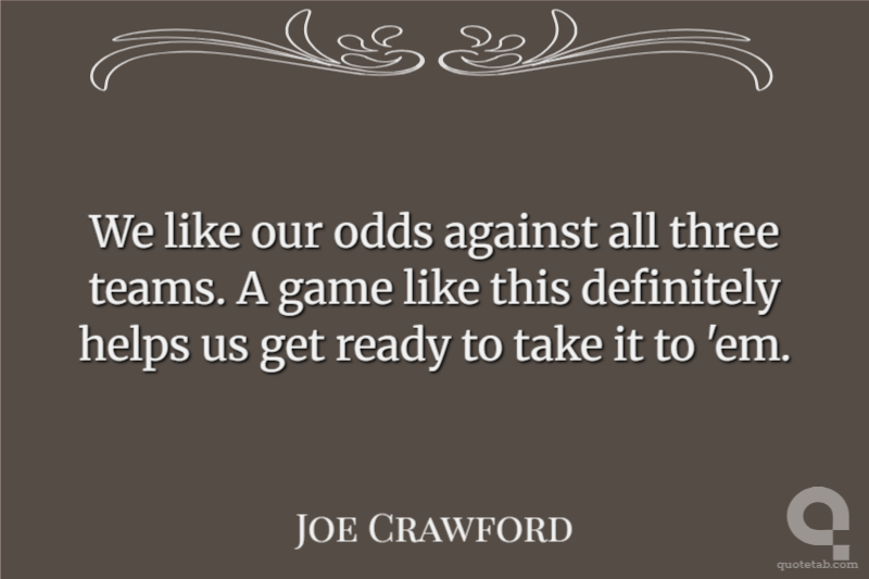 We like our odds against all three teams. A game like this definitely helps us get ready to take it to 'em.