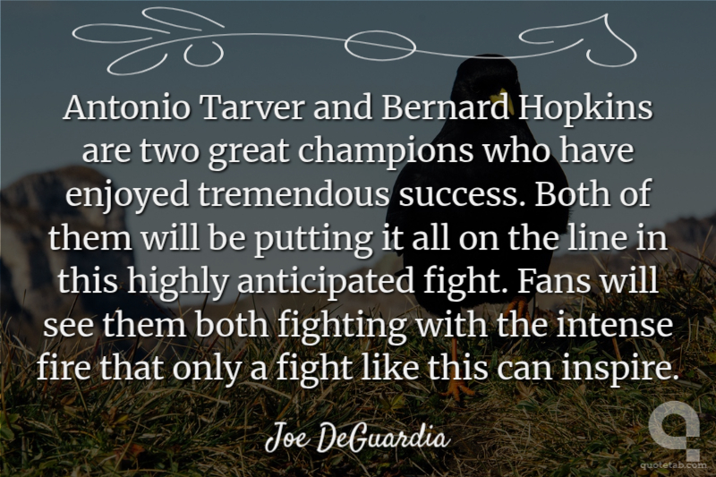 Antonio Tarver and Bernard Hopkins are two great champions who have enjoyed tremendous success. Both of them will be putting it all on the line in this highly anticipated fight. Fans will see them both fighting with the intense fire that only a fight like this can inspire.