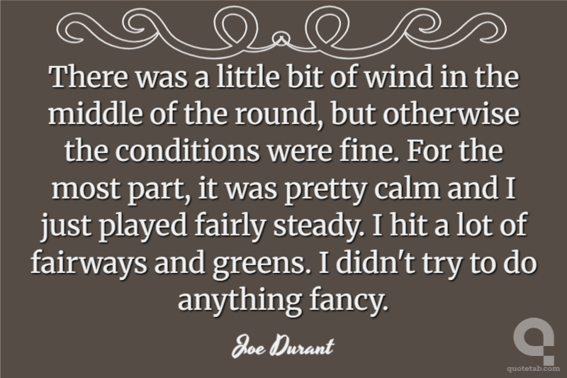 There was a little bit of wind in the middle of the round, but otherwise the conditions were fine. For the most part, it was pretty calm and I just played fairly steady. I hit a lot of fairways and greens. I didn't try to do anything fancy.
