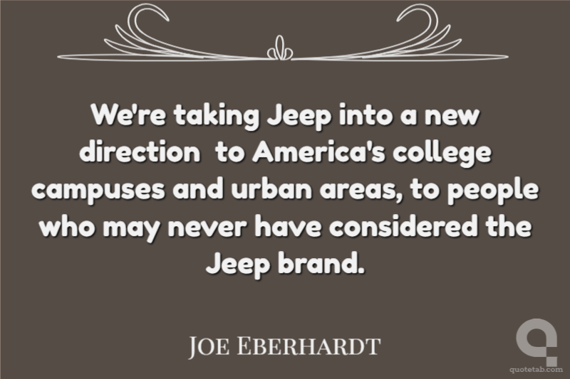 We're taking Jeep into a new direction to America's college campuses and urban areas, to people who may never have considered the Jeep brand.