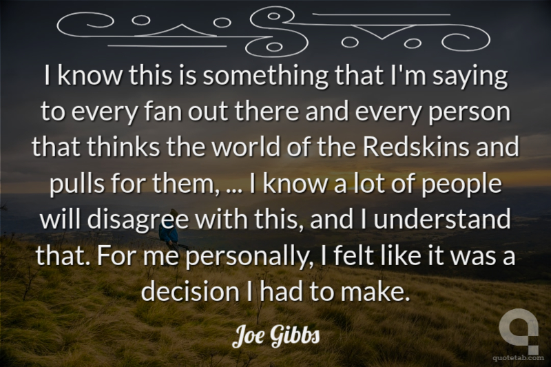 I know this is something that I'm saying to every fan out there and every person that thinks the world of the Redskins and pulls for them, ... I know a lot of people will disagree with this, and I understand that. For me personally, I felt like it was a decision I had to make.