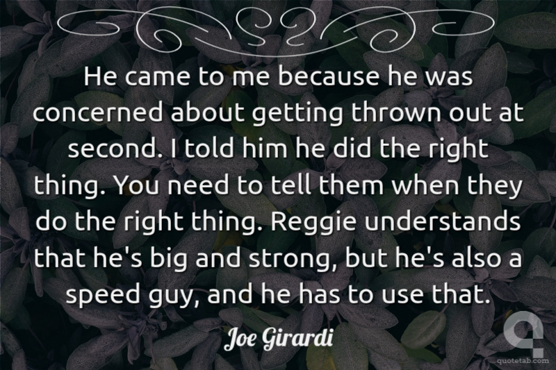 He came to me because he was concerned about getting thrown out at second. I told him he did the right thing. You need to tell them when they do the right thing. Reggie understands that he's big and strong, but he's also a speed guy, and he has to use that.