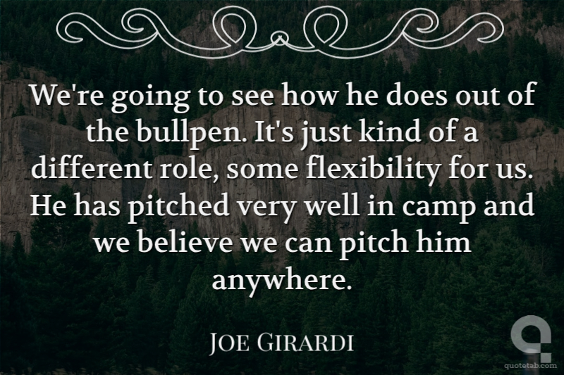 We're going to see how he does out of the bullpen. It's just kind of a different role, some flexibility for us. He has pitched very well in camp and we believe we can pitch him anywhere.