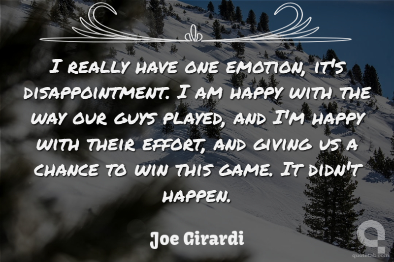 I really have one emotion, it's disappointment. I am happy with the way our guys played, and I'm happy with their effort, and giving us a chance to win this game. It didn't happen.