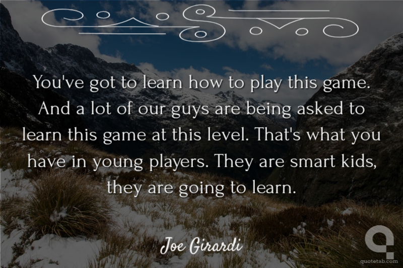 You've got to learn how to play this game. And a lot of our guys are being asked to learn this game at this level. That's what you have in young players. They are smart kids, they are going to learn.