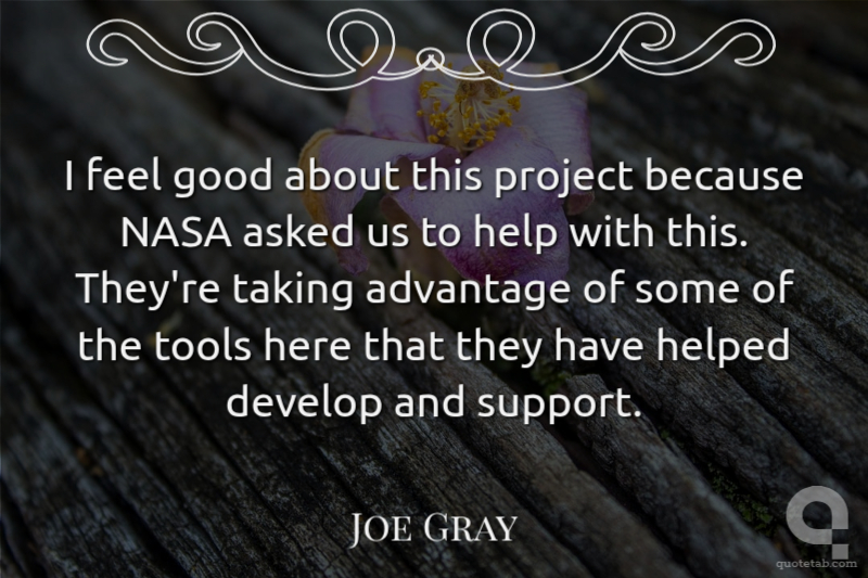 I feel good about this project because NASA asked us to help with this. They're taking advantage of some of the tools here that they have helped develop and support.