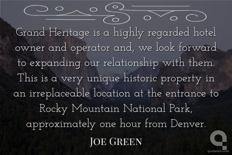 Grand Heritage is a highly regarded hotel owner and operator and, we look forward to expanding our relationship with them. This is a very unique historic property in an irreplaceable location at the entrance to Rocky Mountain National Park, approximately one hour from Denver.