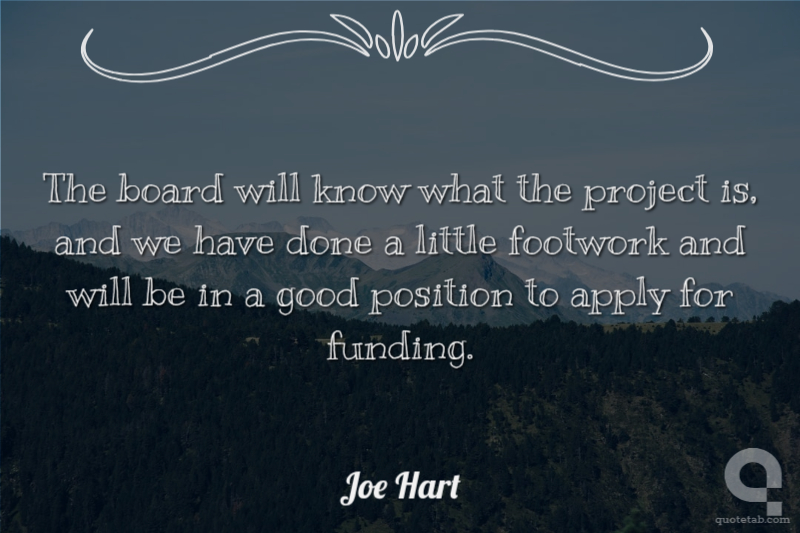 The board will know what the project is, and we have done a little footwork and will be in a good position to apply for funding.