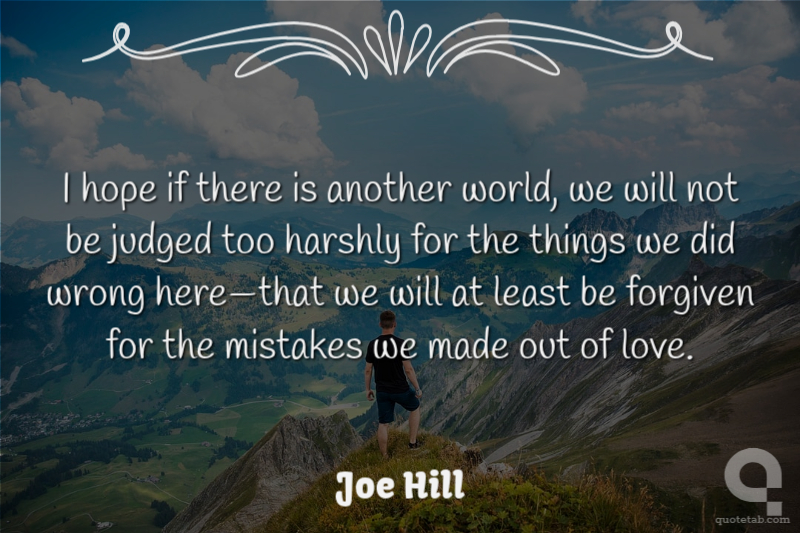 I hope if there is another world, we will not be judged too harshly for the things we did wrong here—that we will at least be forgiven for the mistakes we made out of love.