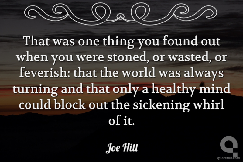 That was one thing you found out when you were stoned, or wasted, or feverish: that the world was always turning and that only a healthy mind could block out the sickening whirl of it.