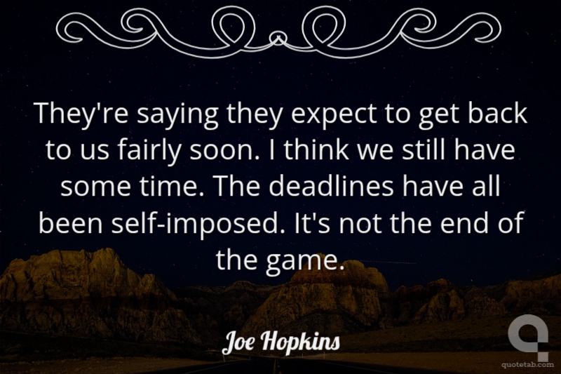 They're saying they expect to get back to us fairly soon. I think we still have some time. The deadlines have all been self-imposed. It's not the end of the game.
