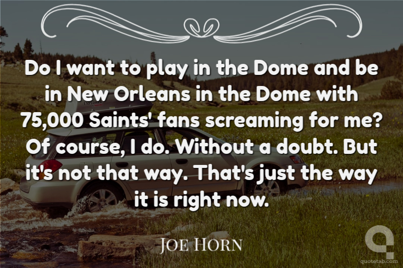 Do I want to play in the Dome and be in New Orleans in the Dome with 75,000 Saints' fans screaming for me? Of course, I do. Without a doubt. But it's not that way. That's just the way it is right now.