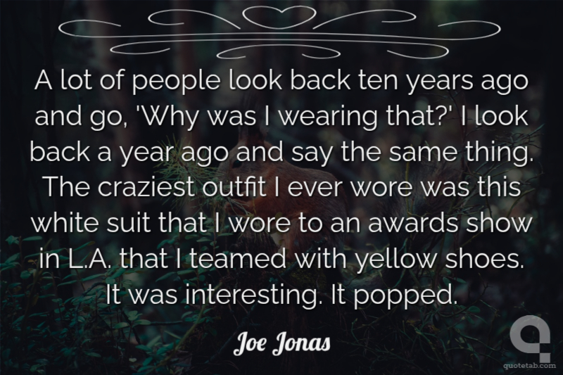 A lot of people look back ten years ago and go, 'Why was I wearing that?' I look back a year ago and say the same thing. The craziest outfit I ever wore was this white suit that I wore to an awards show in L.A. that I teamed with yellow shoes. It was interesting. It popped.