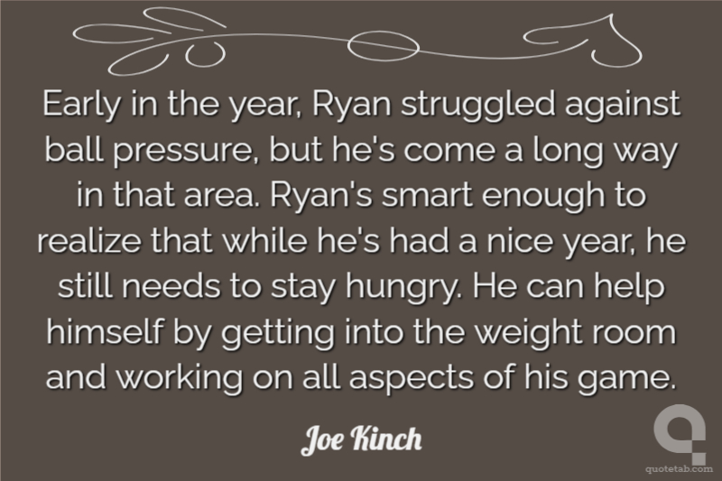 Early in the year, Ryan struggled against ball pressure, but he's come a long way in that area. Ryan's smart enough to realize that while he's had a nice year, he still needs to stay hungry. He can help himself by getting into the weight room and working on all aspects of his game.