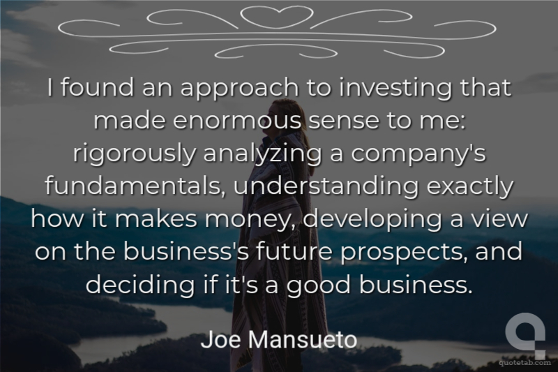 I found an approach to investing that made enormous sense to me: rigorously analyzing a company's fundamentals, understanding exactly how it makes money, developing a view on the business's future prospects, and deciding if it's a good business.