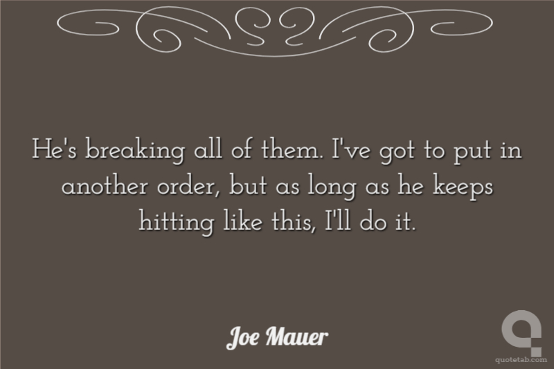 He's breaking all of them. I've got to put in another order, but as long as he keeps hitting like this, I'll do it.