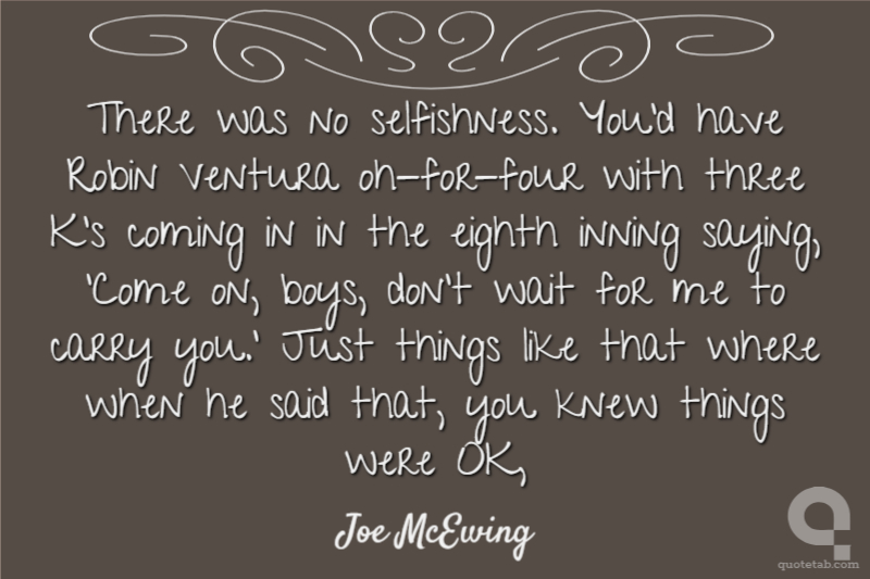There was no selfishness. You'd have Robin Ventura oh-for-four with three K's coming in in the eighth inning saying, 'Come on, boys, don't wait for me to carry you.' Just things like that where when he said that, you knew things were OK,