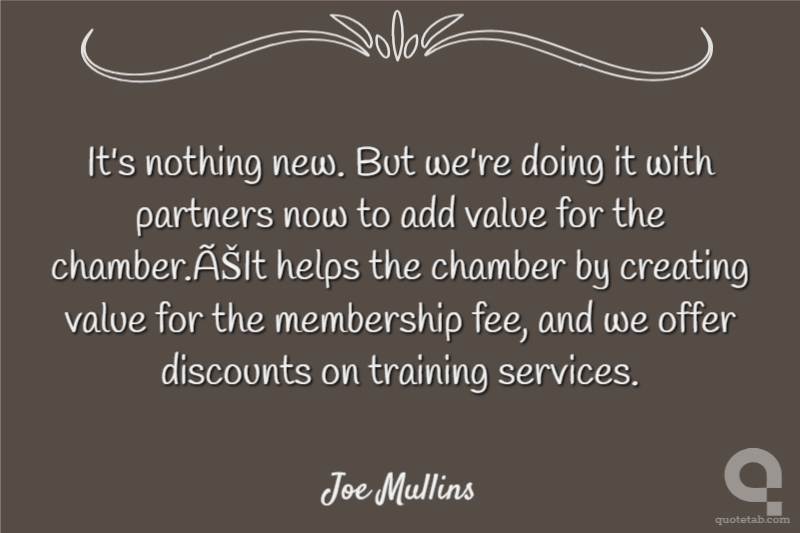It's nothing new. But we're doing it with partners now to add value for the chamber.ÊIt helps the chamber by creating value for the membership fee, and we offer discounts on training services.