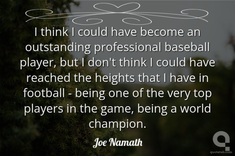 I think I could have become an outstanding professional baseball player, but I don't think I could have reached the heights that I have in football - being one of the very top players in the game, being a world champion.