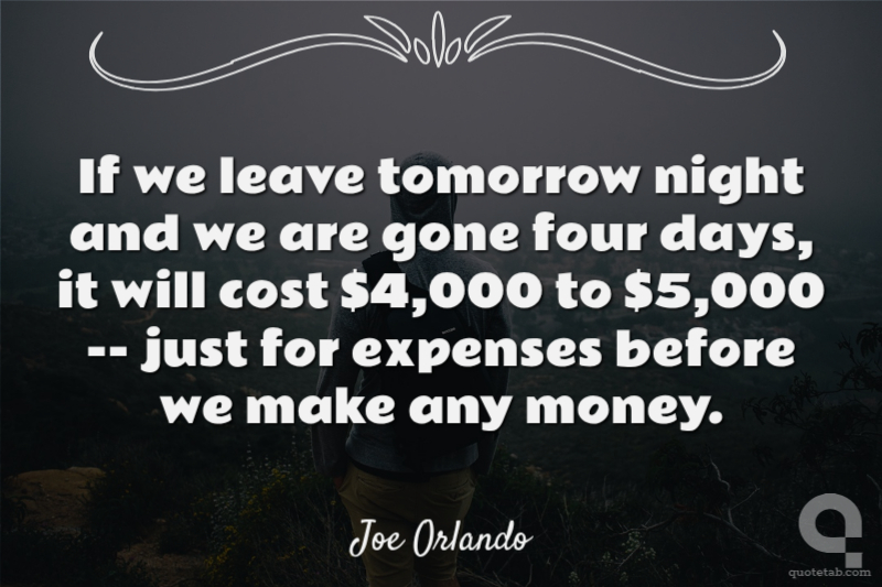 If we leave tomorrow night and we are gone four days, it will cost $4,000 to $5,000 -- just for expenses before we make any money.
