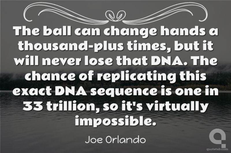 The ball can change hands a thousand-plus times, but it will never lose that DNA. The chance of replicating this exact DNA sequence is one in 33 trillion, so it's virtually impossible.