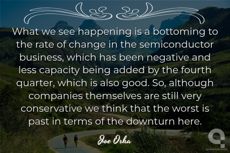 What we see happening is a bottoming to the rate of change in the semiconductor business, which has been negative and less capacity being added by the fourth quarter, which is also good. So, although companies themselves are still very conservative we think that the worst is past in terms of the downturn here.