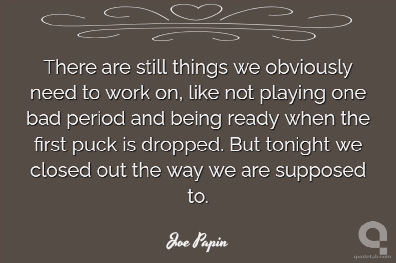 There are still things we obviously need to work on, like not playing one bad period and being ready when the first puck is dropped. But tonight we closed out the way we are supposed to.