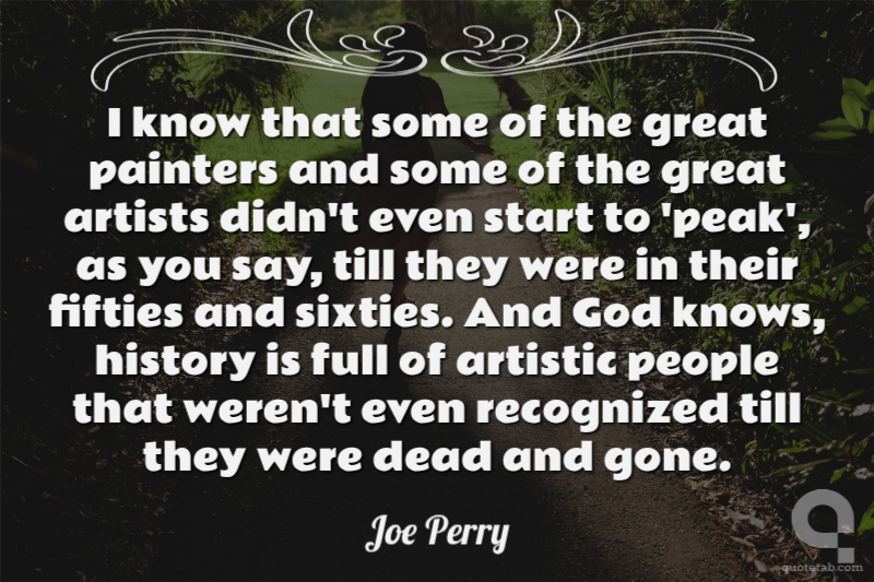 I know that some of the great painters and some of the great artists didn't even start to 'peak', as you say, till they were in their fifties and sixties. And God knows, history is full of artistic people that weren't even recognized till they were dead and gone.