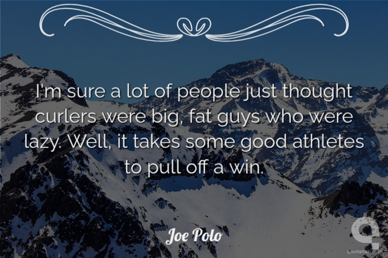 I'm sure a lot of people just thought curlers were big, fat guys who were lazy. Well, it takes some good athletes to pull off a win.