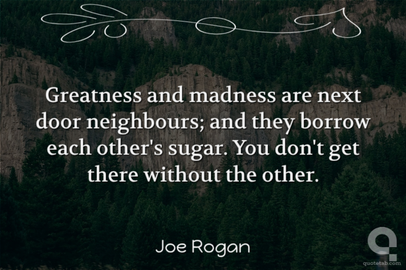 Greatness and madness are next door neighbours; and they borrow each other's sugar. You don't get there without the other.