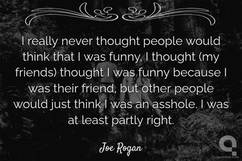 I really never thought people would think that I was funny, I thought (my friends) thought I was funny because I was their friend, but other people would just think I was an asshole. I was at least partly right.