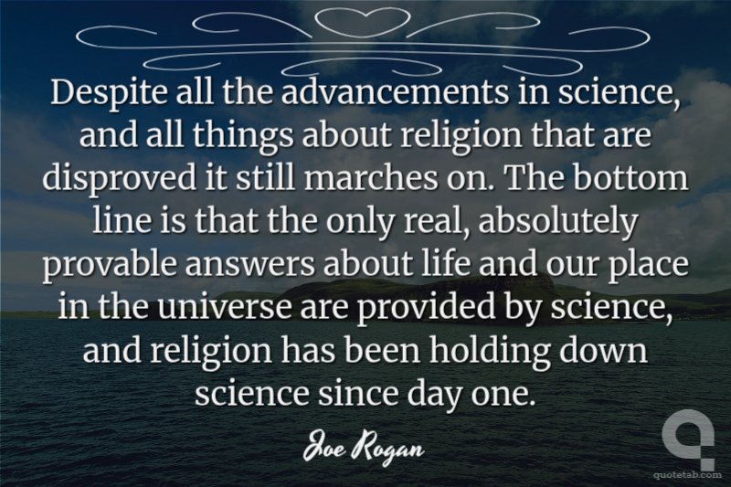 Despite all the advancements in science, and all things about religion that are disproved it still marches on. The bottom line is that the only real, absolutely provable answers about life and our place in the universe are provided by science, and religion has been holding down science since day one.
