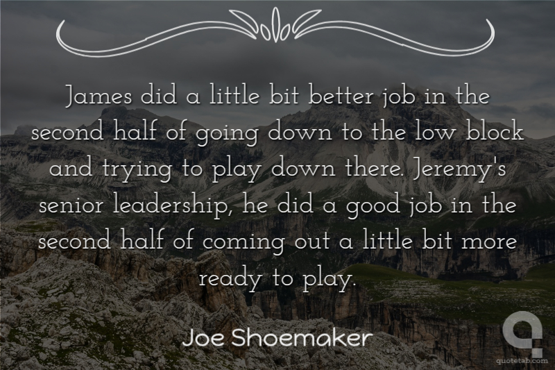 James did a little bit better job in the second half of going down to the low block and trying to play down there. Jeremy's senior leadership, he did a good job in the second half of coming out a little bit more ready to play.