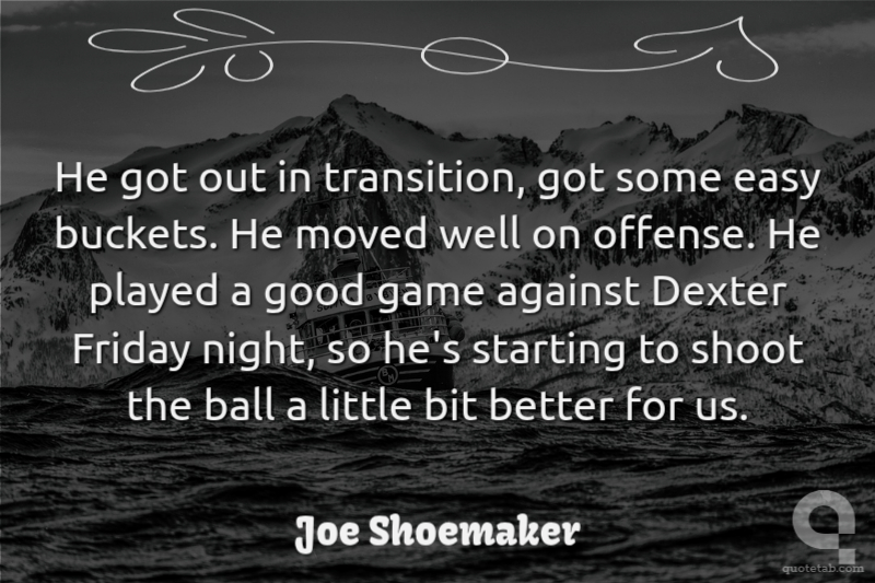 He got out in transition, got some easy buckets. He moved well on offense. He played a good game against Dexter Friday night, so he's starting to shoot the ball a little bit better for us.
