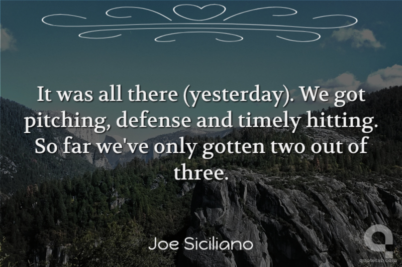 It was all there (yesterday). We got pitching, defense and timely hitting. So far we've only gotten two out of three.