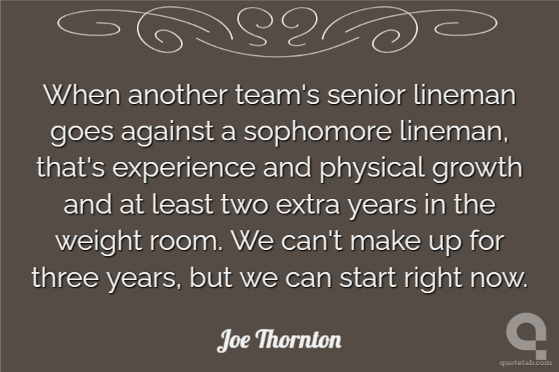 When another team's senior lineman goes against a sophomore lineman, that's experience and physical growth and at least two extra years in the weight room. We can't make up for three years, but we can start right now.