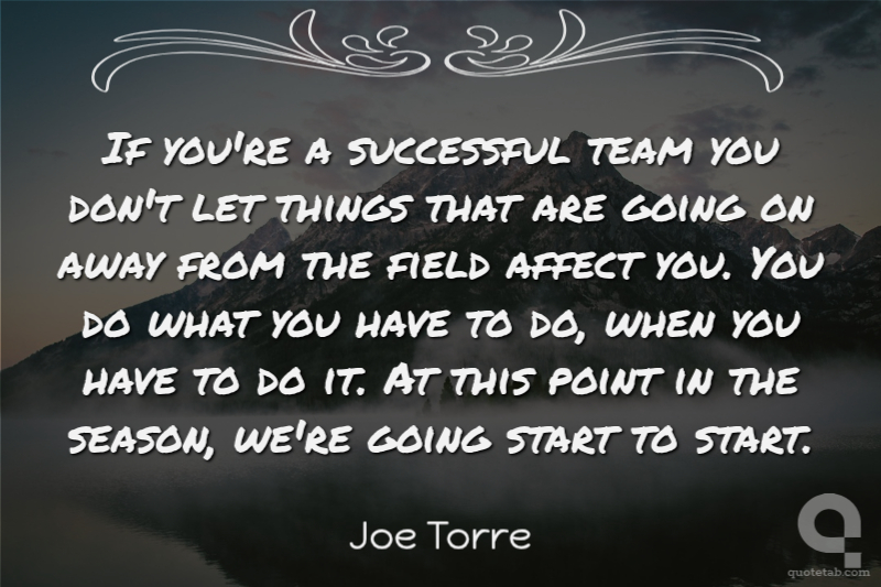 If you're a successful team you don't let things that are going on away from the field affect you. You do what you have to do, when you have to do it. At this point in the season, we're going start to start.