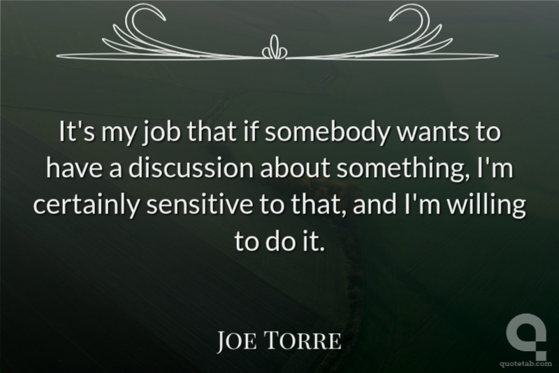 It's my job that if somebody wants to have a discussion about something, I'm certainly sensitive to that, and I'm willing to do it.