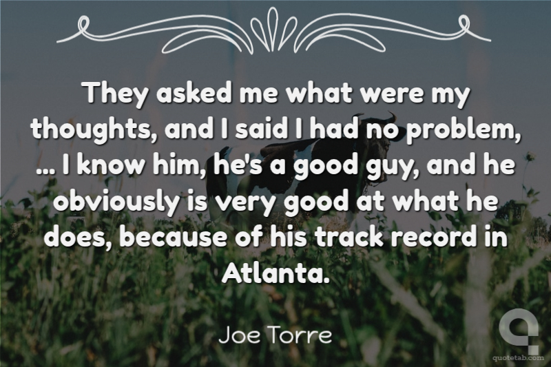 They asked me what were my thoughts, and I said I had no problem, ... I know him, he's a good guy, and he obviously is very good at what he does, because of his track record in Atlanta.