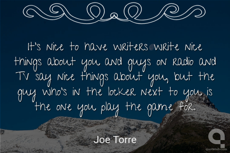 It's nice to have writers write nice things about you and guys on radio and TV say nice things about you, but the guy who's in the locker next to you is the one you play the game for.