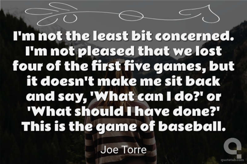 I'm not the least bit concerned. I'm not pleased that we lost four of the first five games, but it doesn't make me sit back and say, 'What can I do?' or 'What should I have done?' This is the game of baseball.
