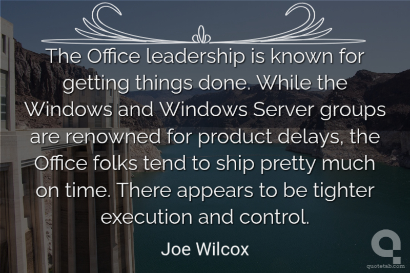 The Office leadership is known for getting things done. While the Windows and Windows Server groups are renowned for product delays, the Office folks tend to ship pretty much on time. There appears to be tighter execution and control.