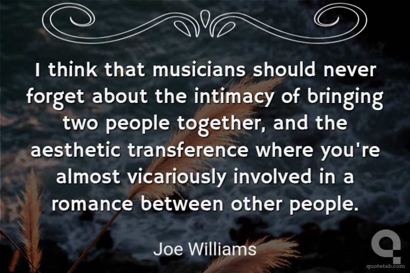 I think that musicians should never forget about the intimacy of bringing two people together, and the aesthetic transference where you're almost vicariously involved in a romance between other people.