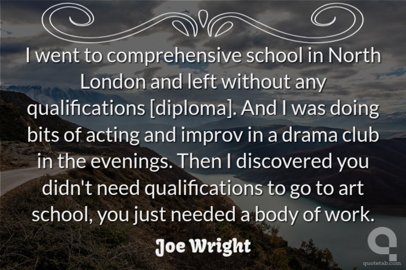 I went to comprehensive school in North London and left without any qualifications [diploma]. And I was doing bits of acting and improv in a drama club in the evenings. Then I discovered you didn't need qualifications to go to art school, you just needed a body of work.