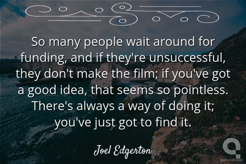 So many people wait around for funding, and if they're unsuccessful, they don't make the film; if you've got a good idea, that seems so pointless. There's always a way of doing it; you've just got to find it.