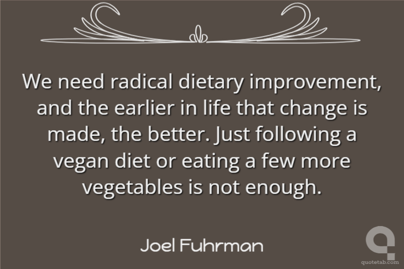 We need radical dietary improvement, and the earlier in life that change is made, the better. Just following a vegan diet or eating a few more vegetables is not enough.