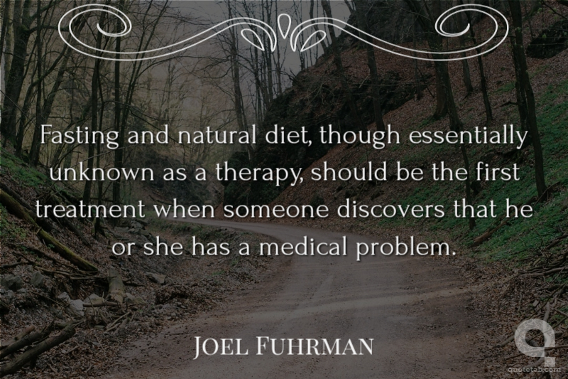 Fasting and natural diet, though essentially unknown as a therapy, should be the first treatment when someone discovers that he or she has a medical problem.