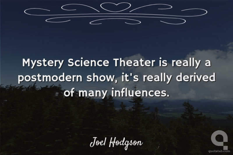 Mystery Science Theater is really a postmodern show, it's really derived of many influences.