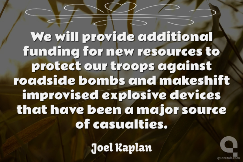 We will provide additional funding for new resources to protect our troops against roadside bombs and makeshift improvised explosive devices that have been a major source of casualties.