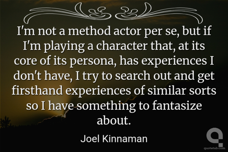 I'm not a method actor per se, but if I'm playing a character that, at its core of its persona, has experiences I don't have, I try to search out and get firsthand experiences of similar sorts so I have something to fantasize about.